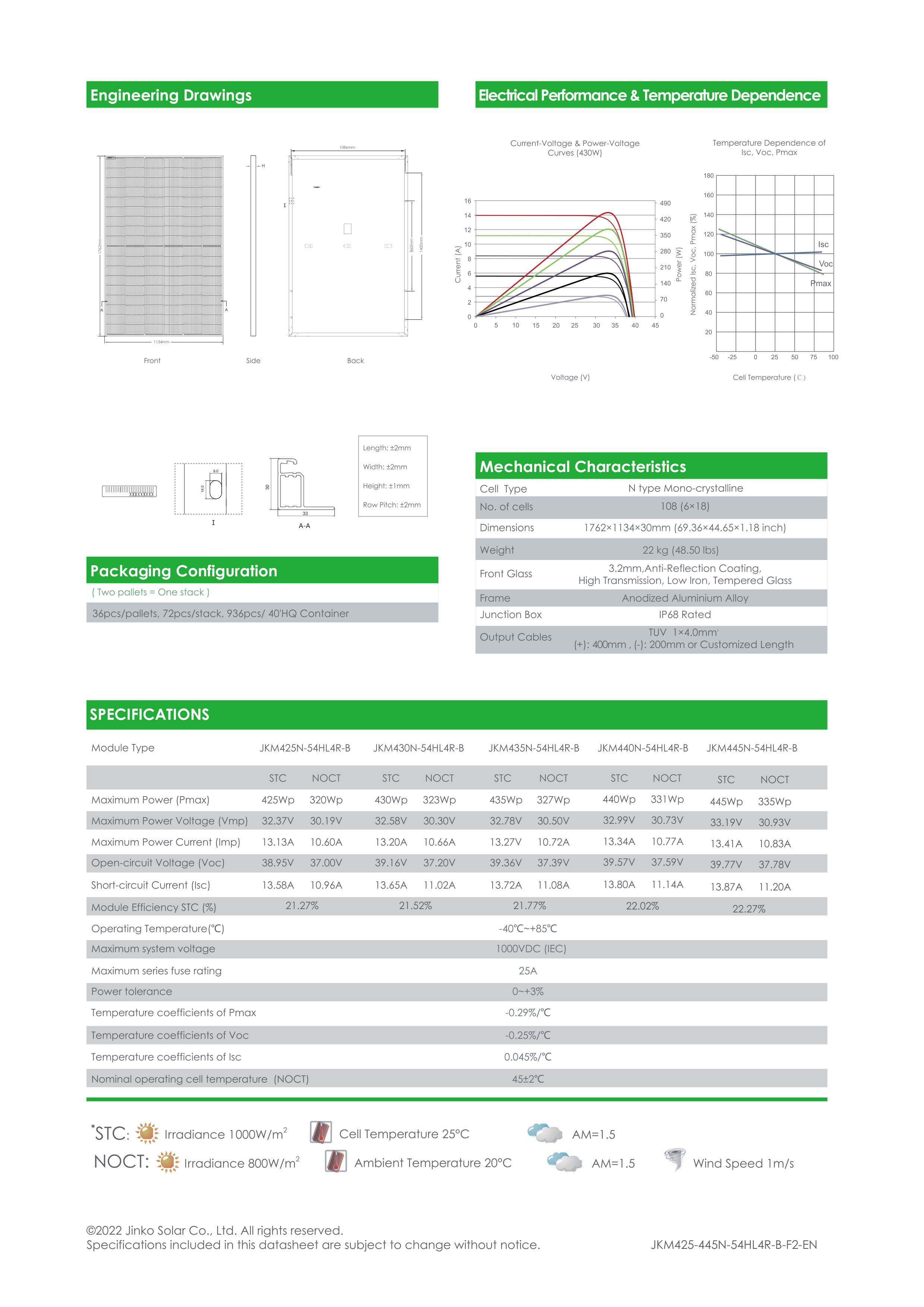 Jinko Solar Tiger Neo N-Type 54HL4R-B – 445W Monofacial Solar Panel
